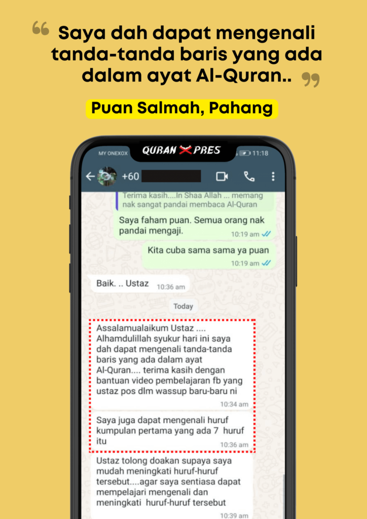" Lepas 7 Hari Dah Boleh Kenal Huruf Yang Selalu Saya Keliru Nak Sebut Dan Boleh Baca Huruf Bersambung Siap Dengan Bunyi Baris.."